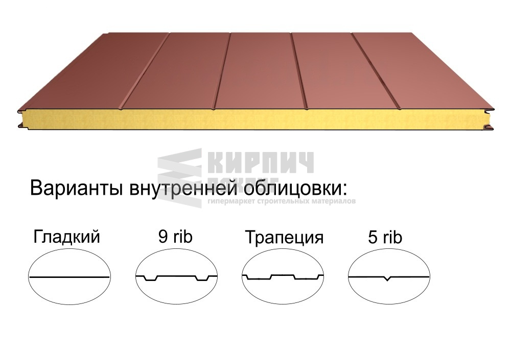 В интернет-магазине "Кирпич Вокруг" Вы можете купить Стеновая трёхслойная сэндвич-панель 5 rib 100мм 1000мм с видимым креплением минеральная вата Полиэстер Доборник в Новомосковске, а наши специалисты готовы вам помочь с выбором по адресу: , или оказать консультацию по телефону: .