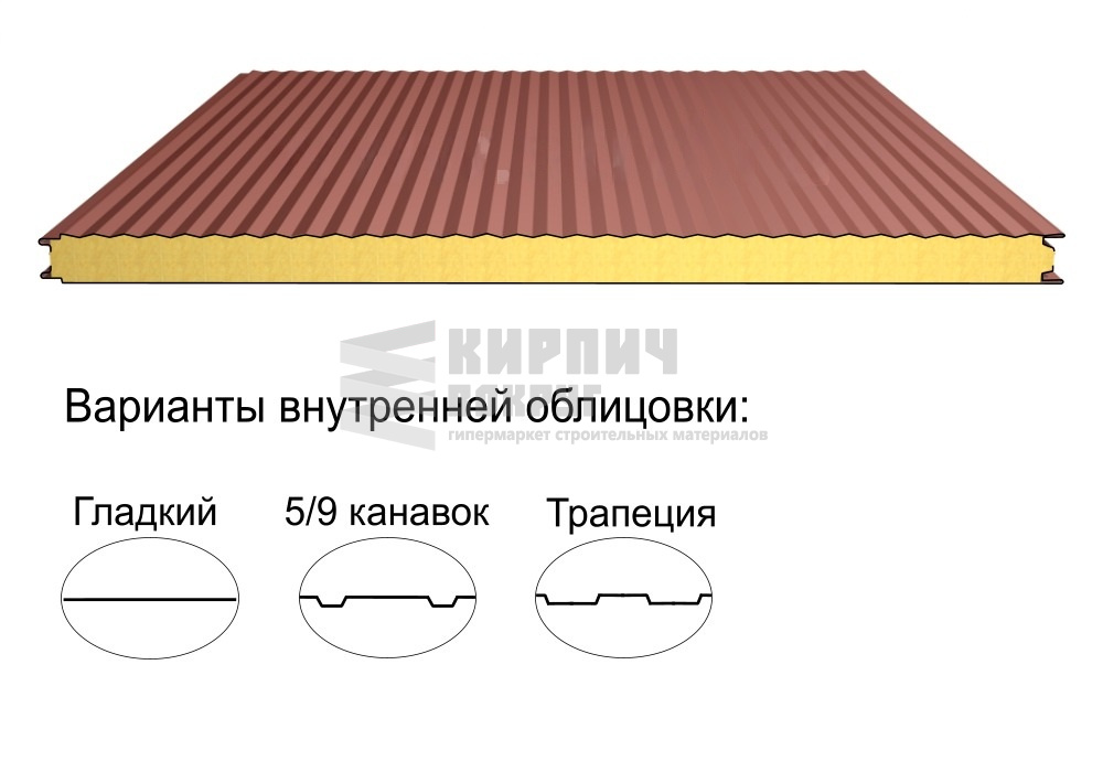 Раздел ТрёхслойныеСтроительный материал, имеющий трёхслойную структуру, состоящую из двух листов металла и слоя утеплителя между ними.